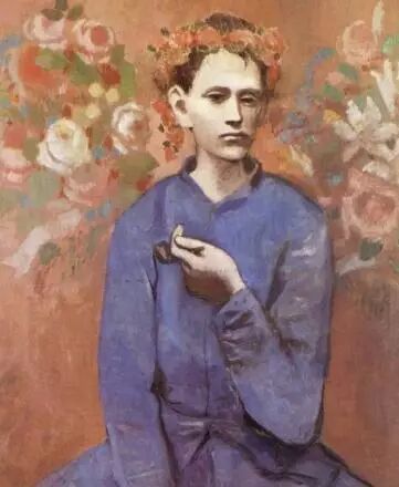 毕加索23岁时爱上了年轻美貌的模特费尔南德·奥利弗,甜蜜的初恋使他脱离忧郁的蓝色时期,开始了玫瑰时期。