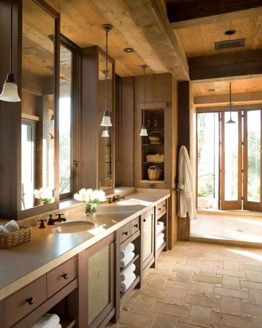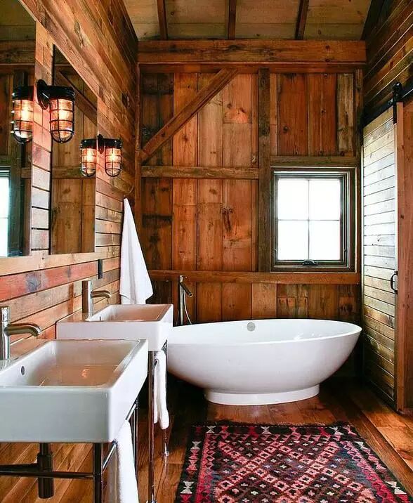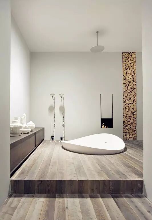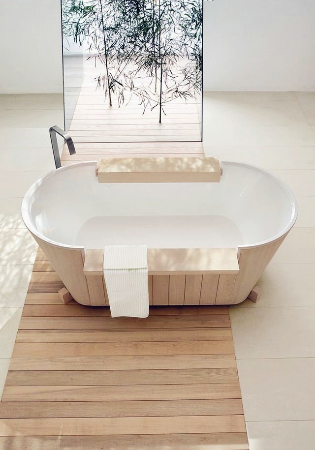爆款三:木质卫浴如果是十分重视浴室舒压气氛的人,可以在浴室地砖或墙壁装饰上使用实木,譬如运用杉木来营造自然氛围,木质嵌板围绕在浴池旁,整个空间变成了一个温情的小屋,泡澡彷彿置身户外温泉般放松。( r% a2 z% ]* y/ i7 ~, q