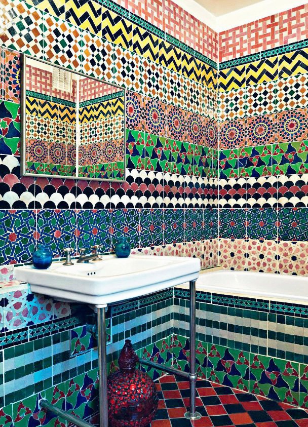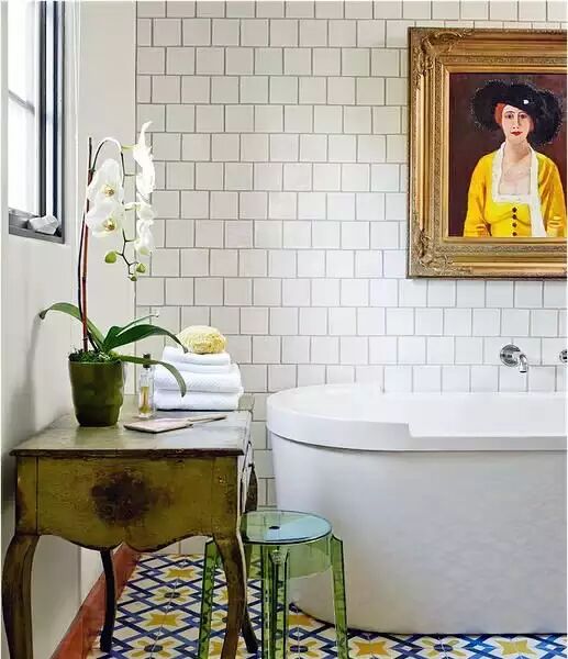 最常见的花砖是被用在浴室,每一块花砖拼接的缝隙都透露着味道,温暖的,私人的,未消散的空气中似乎总存在一丝若有若无的香味,区别于黑白单色调的干净透亮,却从另一个角度美的如此精致。