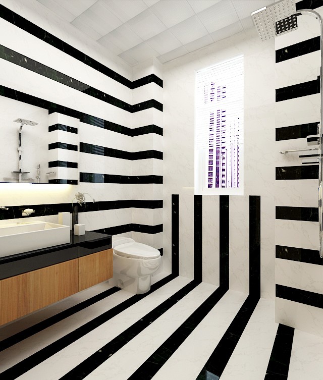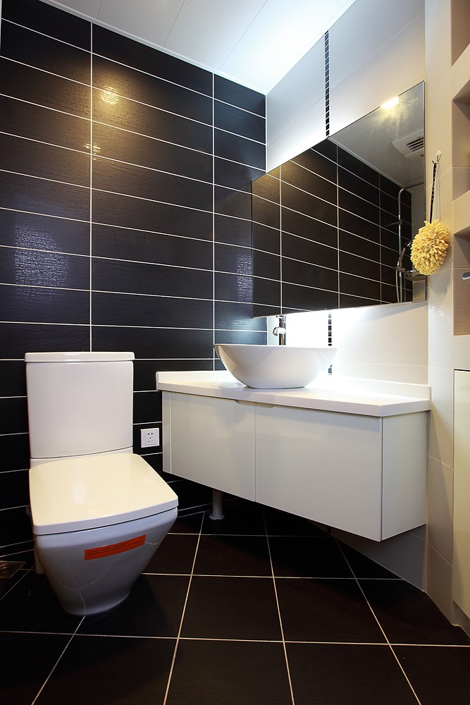 爆款二:黑白配白色代表纯粹,代表轻盈,而深色的瓷砖,却有着不一样的魅力,虽然拥有深沉的质感,也一样能带来光滑无暇的享受。黑与白的对比是亘古不变的永恒经典,浅棕更是典雅高贵的典范。: p4 G& \3 f8 d \6 x$ G/ @