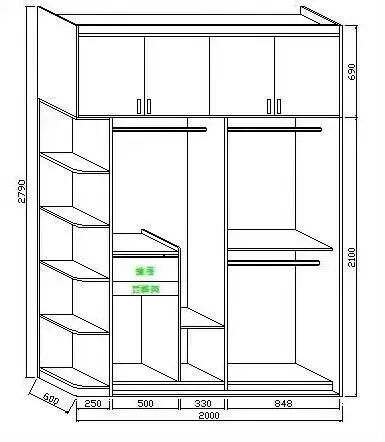 整个衣柜上端通常会设置成放置棉被等不常用物件,高度也要不低于400mm。