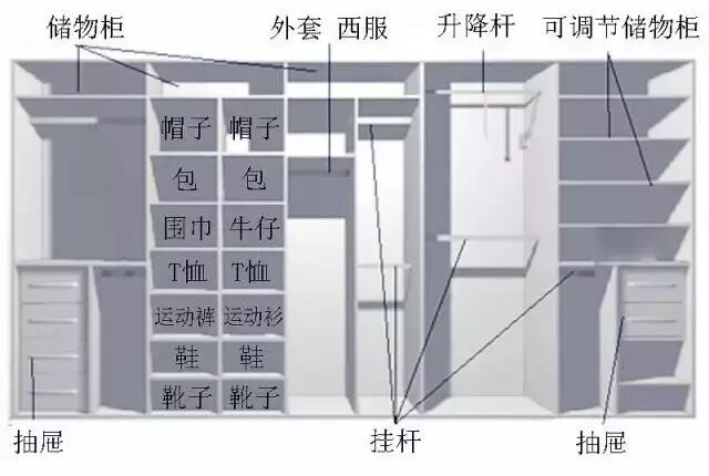内衣、领带和袜子可用专用的小格子,既有利于衣物保养,取物也更直观方便;毛衣可放在较深的抽屉里;裤子则用专用的挂架存放。