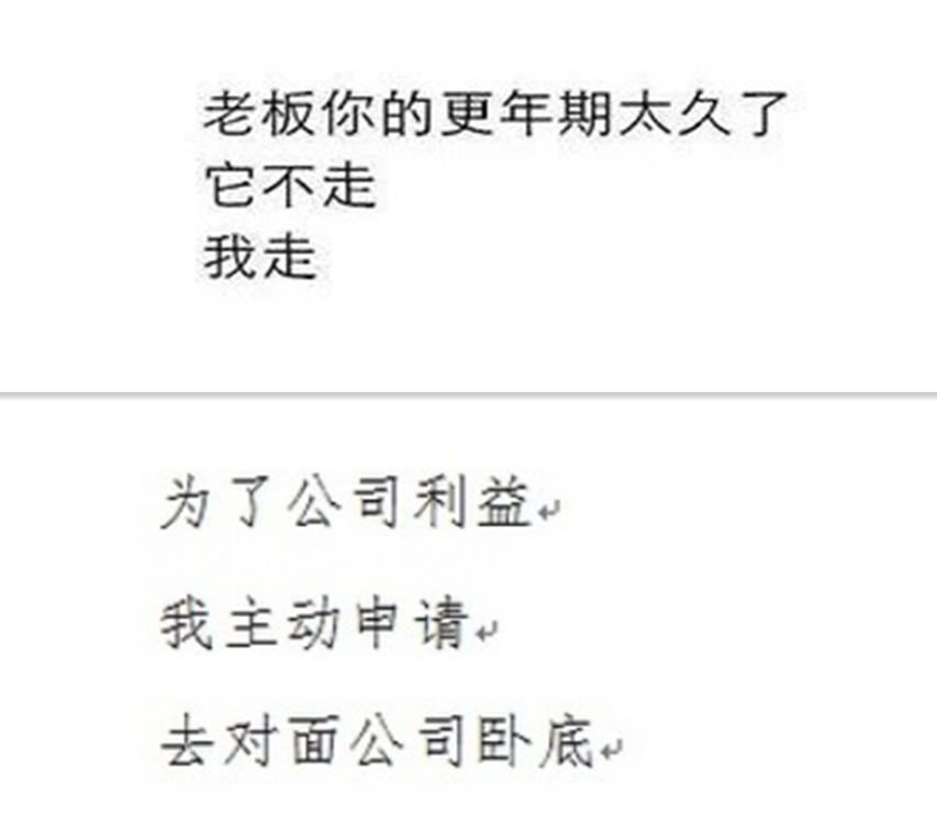 简短型 辞职需要理由吗?不需要吗?需要吗?既然已经选择了要走,那就走好了,不需要什么借口。看来这位老兄深谙此道,来了场说走就走的辞职。