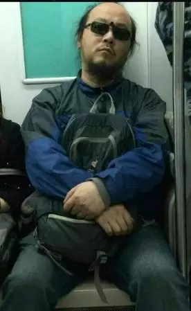 网友在地铁上拍到的窦唯,眼尖的同事一眼认出了他多年以来背的那只包。