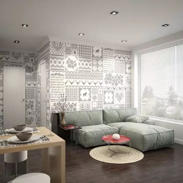# v8 q: D. {# M8 j7 B2 [) v) H一:设计师Segey Procopchuk第一个公寓是来自Segey Procopchuk走心之作,设计师赋予空间独特的青春魅力,如木制框架的厨房、诸多的图案装饰。尽管客厅与卧室只有一面玻璃墙之隔,但是定制的滑动玻璃门关闭时保证一定的隐私。