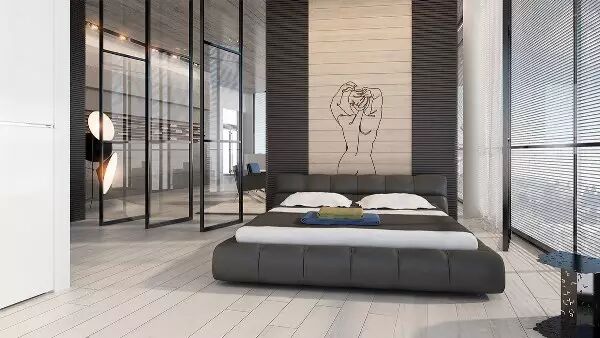 0 u @/ c- U4 |) o3 x3 a5 a: f' V三:设计师Anton ZeitsevAnton Zeitsev设计师让我们看到一个非常开放的布局,卧室没有墙壁索性隔了一间衣帽间,自然的地板,温馨的餐厅,黑色亚光厨房,还不够现代吗?