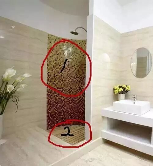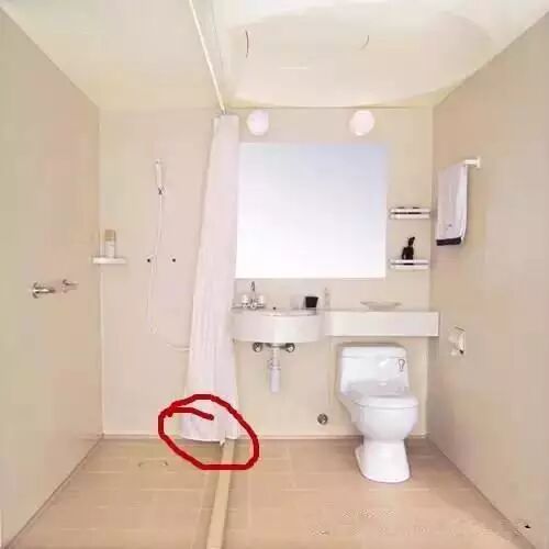 8 C. `. i- i& H) w2 r不用淋雨房要用什么,可以采用是石材加浴帘的方式,但要注意的是石材要有一定高度,浴帘要低于石材,洗澡时将浴帘拉到石材里面。上图画红圈处是错误方法,根本起不到挡水的作用。 . X2 A) I6 l! g6 J3 J2 |