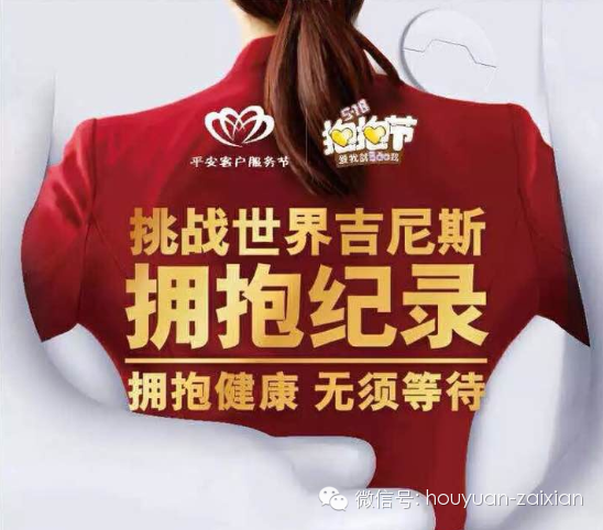 近日,为进一步提升寿险客服节活动影响力,南通平安人寿利用“5.18”抱抱节的契机,积极发挥区域资源优势,组织和开展客服节开端活动——“挑战世界吉尼斯拥抱记录”活动,该活动将与2015年寿险客服节密切结合、并作为20周年启幕活动之一共同推出,向全社会倡导拥抱他人、关爱彼此的理念。 作为客服节的开端活动——“挑战世界吉尼斯拥抱记录”活动,南通平安人寿首先在南通各大网络媒体展开宣传,借力微信、微博等新媒体向区域内推送活动消息。 本次活动通过平安人寿APP报名参加,用户只需在APP上传双人的正面拥抱照片,不但可以挑战吉尼斯记录,还可以赢取丰厚的活动奖品,更有机会活动7月男神吴秀波见面会的参与资格,获得男神的温暖抱抱!
