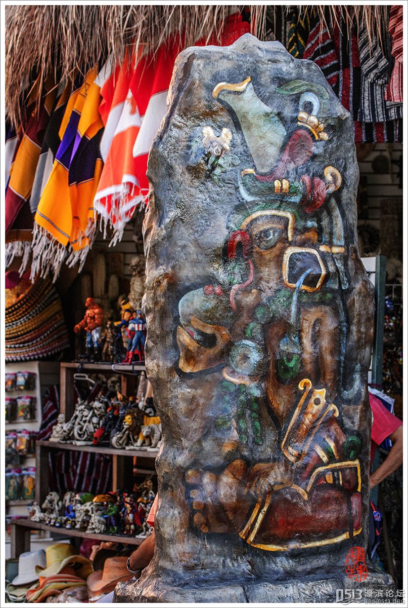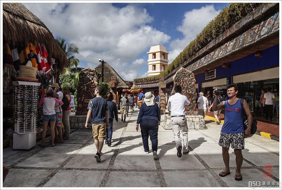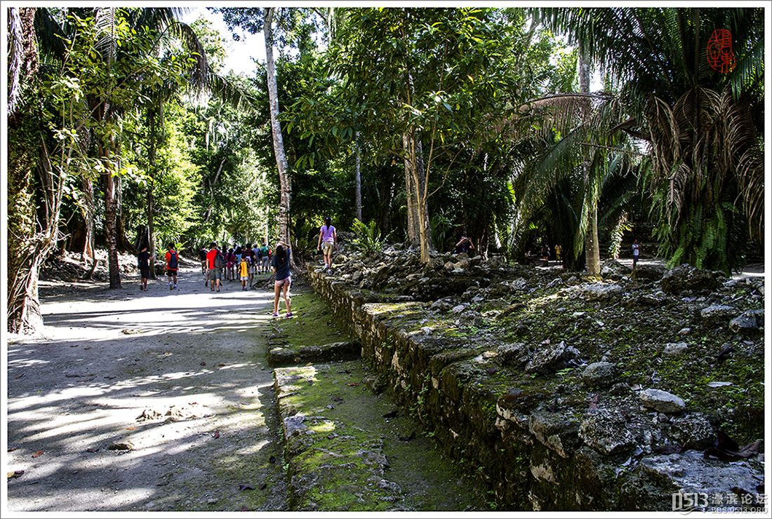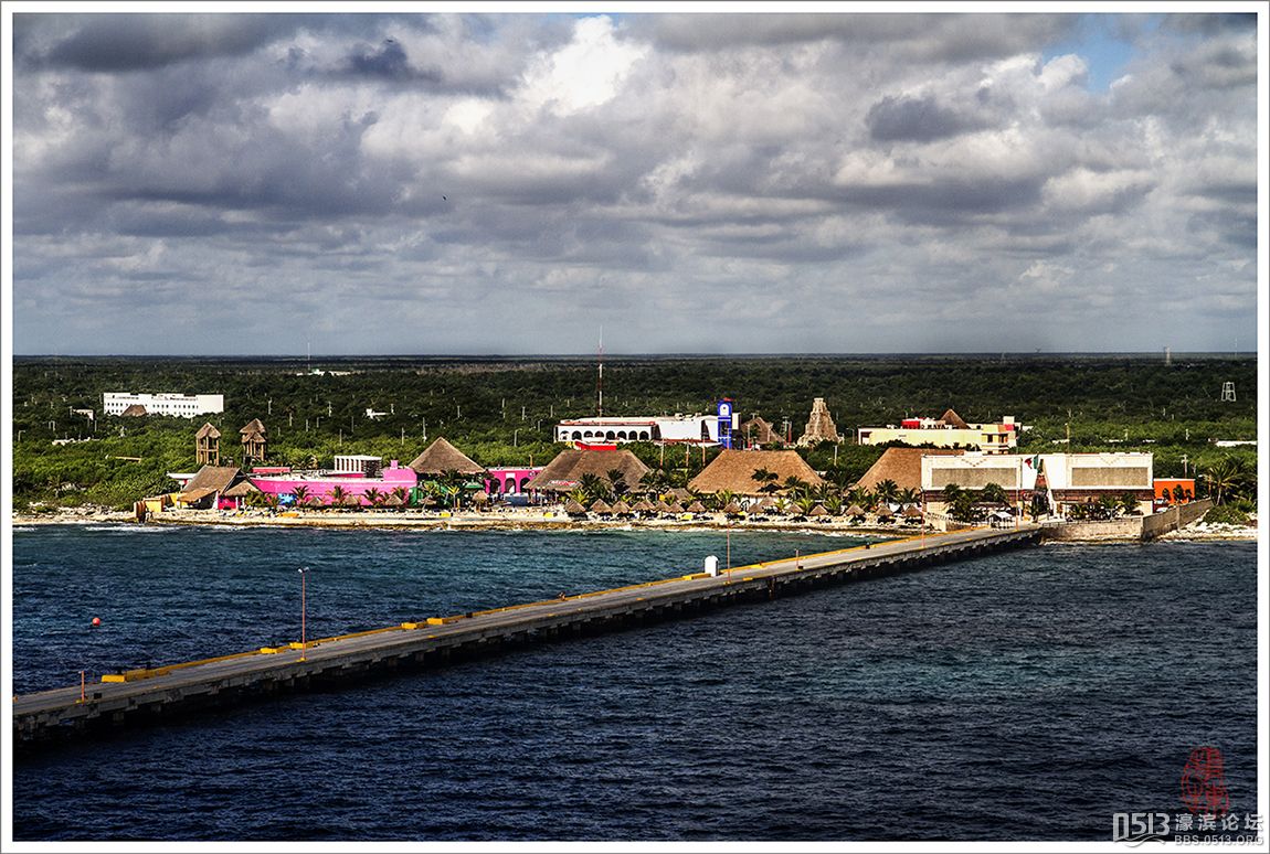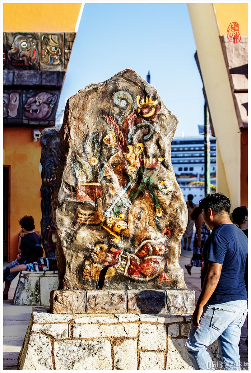 科斯达玛雅(CostaMaya)风光 我们的邮轮首站停靠在墨西哥南部的加勒比海湾尽头的科斯达玛雅(CostaMaya)。 科斯达玛雅(Costa Maya)位于墨西哥东南沿海地区的尤卡坦半岛坎昆的中部。这儿曾是古玛雅帝国最大最繁华的城市,也是玛雅帝国的政治和经济中心。公元前400年左右建立早期奴隶制国家,公元3~9世纪为繁盛期,15世纪衰落,最后为西班牙殖民者摧毁,此后长期湮没在热带丛林中。 我们和大多数来这里的游客一样主要是去看玛雅文化的遗迹。我最想看的是久负盛名的玛雅金字塔。传说玛雅人在3000年前就开始建造宗教性建筑,最早的遗迹是由一些简单的土坟所组成,后来才进一步演化为金字塔。玛雅人的金字塔与埃及人的金字塔除了在造型上略有不同以外,其建筑的作用有着本质区别的:埃及人的金字塔乃是古代埃及统治者法老们的陵墓,而科学家们推测玛雅人的金字塔的一个重要作用则是举行祭祀与庆典祭坛。 据导游讲这儿大大小小的金字塔非常之多,但凡是地面隆起的地方下面就是还没有整理开发的金字塔,这儿目前整理出来的金字塔就有好多个。 土生土长在墨西哥和中美洲的马雅人通过长期观测天象,掌握了日、月、金星的运动规律和日食月食周期,也拥有极其精准的历法。曾经疯传一时的“世界末日”的预言,其实是是有人理解错误,玛雅人的意思是在第五个太阳纪后,玛雅将跨入一个新纪元,并非是世界末日。 马雅长久以来被视为美洲最伟大的文明之一,玛雅文明的建筑工程达到世界最高水平,能对坚固的石料进行雕镂加工。在马雅人打造出宏伟的石造城市之际,当时的欧洲却仍处於黑暗时代。最不可思议的是,导游指着高出地面的很长一段用石头垒砌成的建筑遗存说,这是玛雅人的火车铁路遗址(第12图)。 科斯达玛雅(Costa Maya)现在是是世界著名的旅游胜地。在这里不仅可以饱揽玛雅文明的历史遗存,还可以领略到热带滨海城市的风情,可以尽情享受阳光、海浪、沙滩以及墨西哥文化和中美洲独特的生活情调。 6 Q% L1 o( [5 L4 P- C