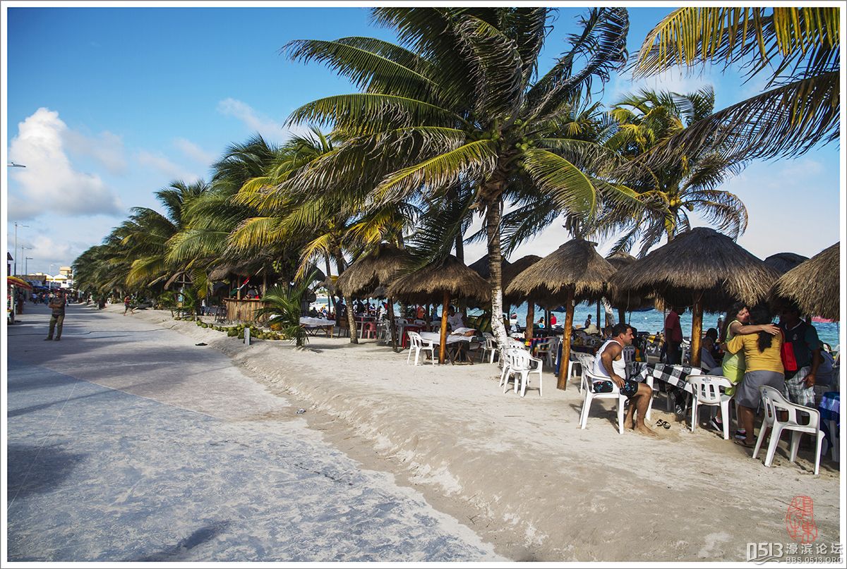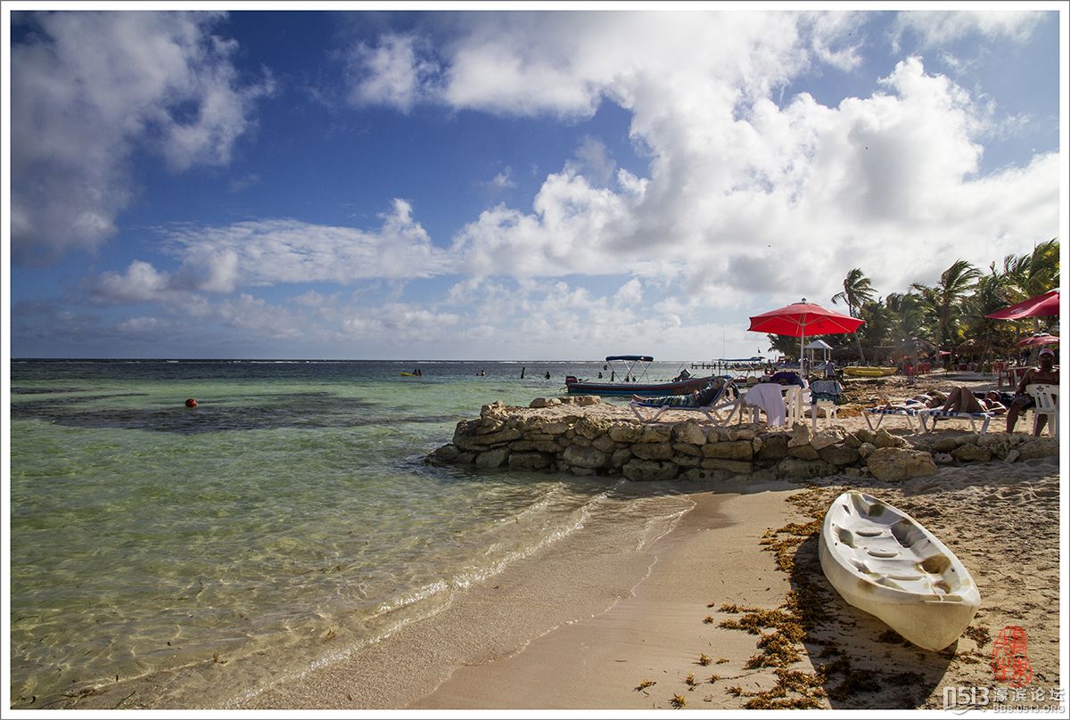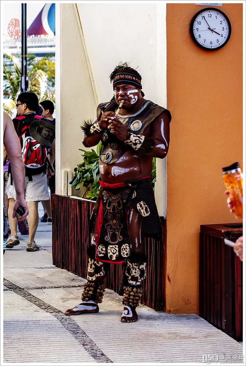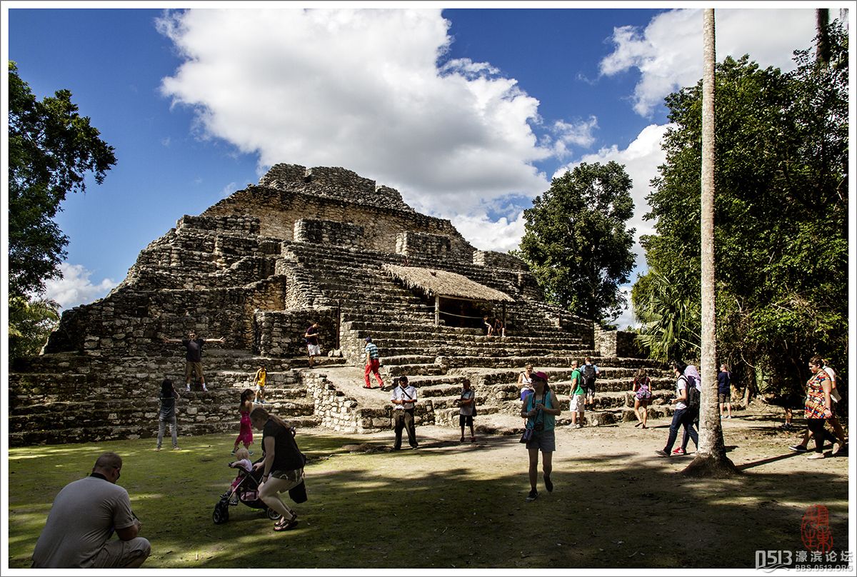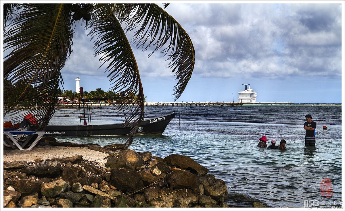 科斯达玛雅(CostaMaya)风光 我们的邮轮首站停靠在墨西哥南部的加勒比海湾尽头的科斯达玛雅(CostaMaya)。 科斯达玛雅(Costa Maya)位于墨西哥东南沿海地区的尤卡坦半岛坎昆的中部。这儿曾是古玛雅帝国最大最繁华的城市,也是玛雅帝国的政治和经济中心。公元前400年左右建立早期奴隶制国家,公元3~9世纪为繁盛期,15世纪衰落,最后为西班牙殖民者摧毁,此后长期湮没在热带丛林中。 我们和大多数来这里的游客一样主要是去看玛雅文化的遗迹。我最想看的是久负盛名的玛雅金字塔。传说玛雅人在3000年前就开始建造宗教性建筑,最早的遗迹是由一些简单的土坟所组成,后来才进一步演化为金字塔。玛雅人的金字塔与埃及人的金字塔除了在造型上略有不同以外,其建筑的作用有着本质区别的:埃及人的金字塔乃是古代埃及统治者法老们的陵墓,而科学家们推测玛雅人的金字塔的一个重要作用则是举行祭祀与庆典祭坛。 据导游讲这儿大大小小的金字塔非常之多,但凡是地面隆起的地方下面就是还没有整理开发的金字塔,这儿目前整理出来的金字塔就有好多个。 土生土长在墨西哥和中美洲的马雅人通过长期观测天象,掌握了日、月、金星的运动规律和日食月食周期,也拥有极其精准的历法。曾经疯传一时的“世界末日”的预言,其实是是有人理解错误,玛雅人的意思是在第五个太阳纪后,玛雅将跨入一个新纪元,并非是世界末日。 马雅长久以来被视为美洲最伟大的文明之一,玛雅文明的建筑工程达到世界最高水平,能对坚固的石料进行雕镂加工。在马雅人打造出宏伟的石造城市之际,当时的欧洲却仍处於黑暗时代。最不可思议的是,导游指着高出地面的很长一段用石头垒砌成的建筑遗存说,这是玛雅人的火车铁路遗址(第12图)。 科斯达玛雅(Costa Maya)现在是是世界著名的旅游胜地。在这里不仅可以饱揽玛雅文明的历史遗存,还可以领略到热带滨海城市的风情,可以尽情享受阳光、海浪、沙滩以及墨西哥文化和中美洲独特的生活情调。 6 Q% L1 o( [5 L4 P- C