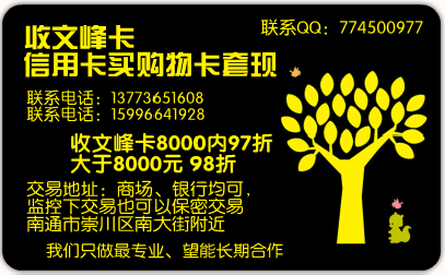 【98折起】南通信用卡买购物卡套现服务、收购物卡文峰卡97~98 |