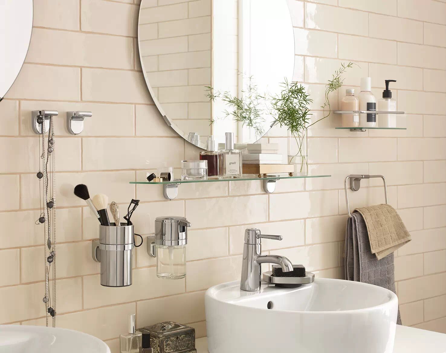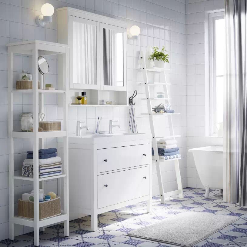 如果嫌浴室东西太多容易乱,干脆像这样摆两把架子,一切都整齐了。 3 {9 R! j5 R$ R