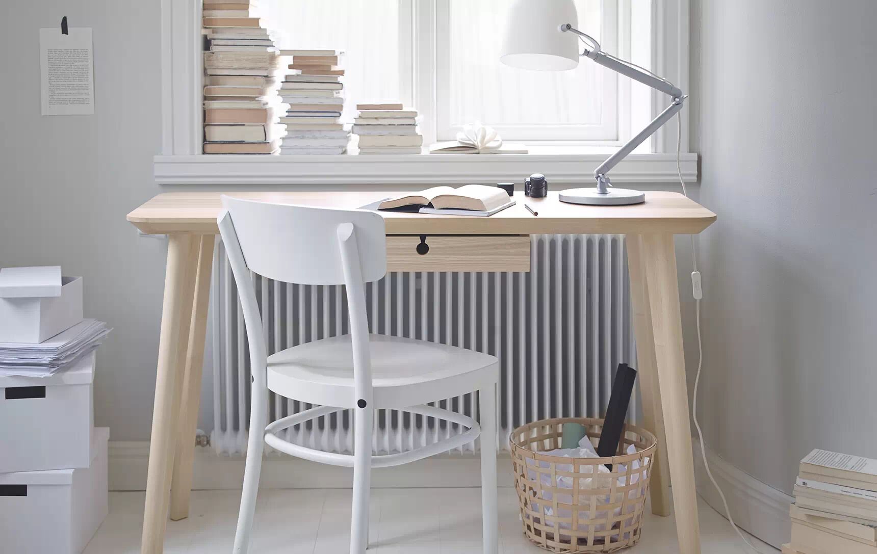 5 j( h' v" I r4 L对于年轻人来说,家里有个小书桌是很必要的,平时看看书做做画,也能随时做个工作台。