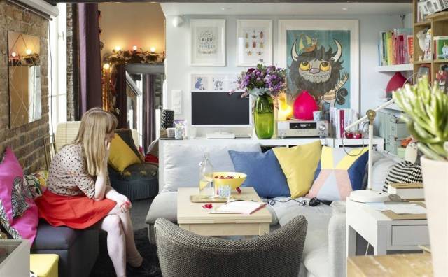 想让家里的气氛变得活跃,很多人都想到用缤纷颜色这一招,但要怎样做才不会让人视觉疲劳呢?使用丰富色彩的前提是你必须保证一个平和素色的基调。比方说她的小公寓,基调是白色,然后再用彩色的细节装饰,这种情况下,即使颜色很多,也能很好的融合。