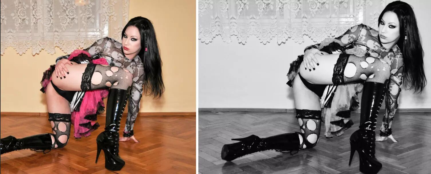 # I- ~' f! `+ q9 o2 g V) H时尚大片们就不断的用黑暗王国的各种元素在推陈出新。你会发现能让你印象深刻的照片总是经过了“去色”处理。