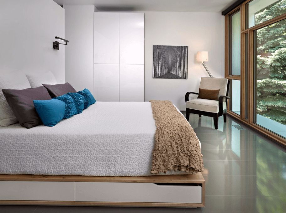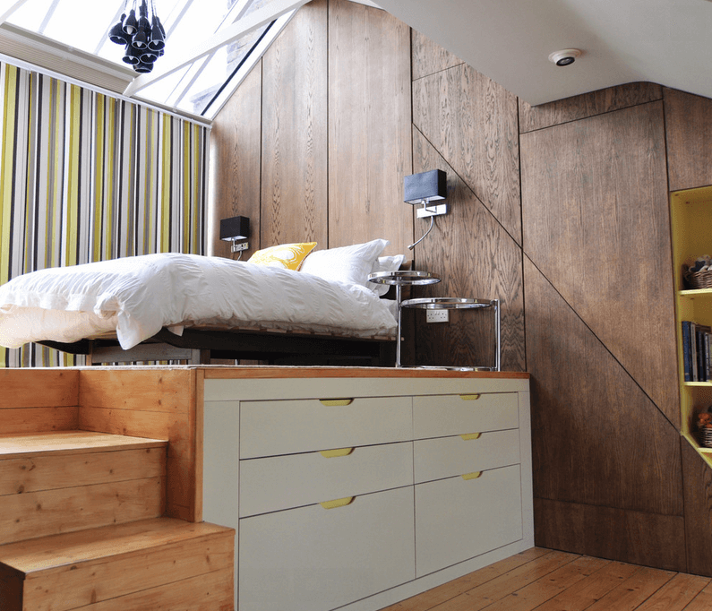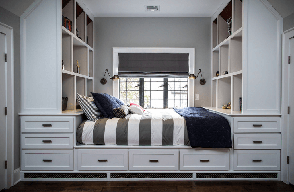 床底下的活空间 小编知道你的床周围堆满了各种物品,床底下还放了许多鞋子!但这都不是事儿,你要知道有些床带有抽屉,床头板还有书架呢。