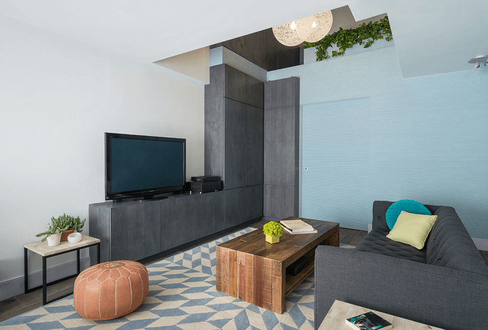 智能的家具 多功能家具一举多得,垫一块毯子它就是沙发了,在挑几个不错的抱枕它就是床了,这个好主意都不用在小空间里,小编无话可说啦。 * R# o6 Y9 a$ v6 C) I) N& N