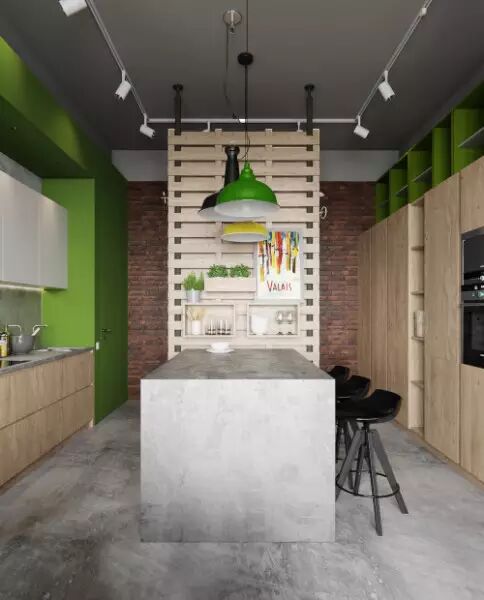 ! k+ I1 E, x% ^: Z这工业风格的家是专为一对年轻夫妇设计的,看到了吗?这个独特的改造在厨房空间,明亮的绿色可是每次来访者一致好评的亮点。