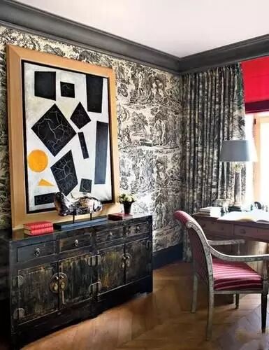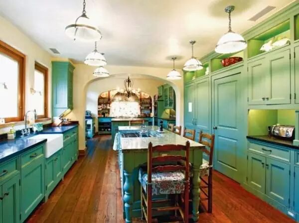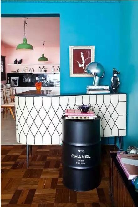 红色搭配绿色,大胆的尝试。窗帘的颜色与梅红色桌布及绿色墙壁相呼应。大红色具有现代感的椅子搭配红色的储物柜。梅红色的地板是整个家居装饰的一大特色。 精彩的撞色家居能活泼空间的氛围,提升室内个性时尚指数。黄色的墙面让黑框的壁画具有跳跃的感觉又展现出了时尚典雅的气息。亮眼的绿色植物更是为居室增加了生机与活力。地板的自然木色让屋子更加温馨。 打翻颜料盘的房间。各种颜色拼接起来的地板就已经足够抢人眼球,四张风格、颜色迥异的椅子又是屋子的一大亮点。做旧的地板让屋子更加具有文艺气息。 地板的木质色,与橱柜以及白色屋顶相撞。整个厨房以粉绿色为主,搭配碎花木椅,传达出浓厚的田园家居风格。 木质画框展示的抽象元素让屋子不失现代感。人字木质地板和复古展柜及大胆黑色花纹墙面相撞,迸发出精彩绝伦的女王范儿复古视觉效果。 大多数人都喜欢海蓝色的墙面,拼花地板和墙面形成撞色。黑色的铁桶让屋子多了一份稳重和大气,同时又起到搁架的作用。白色的吧台对客厅和厨房做了一个很好的连接。而厨房则是采用粉红色,不同的区域根据颜色划分开来,整合出一个多变的家居空间。 , i( g! t! l/ H M9 Y