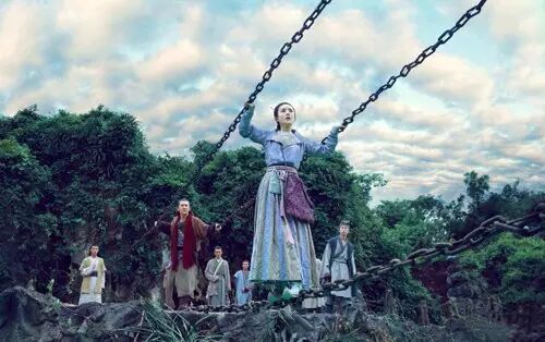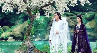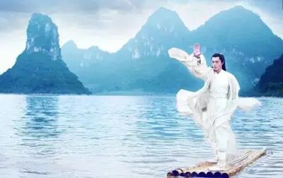 无论独乘竹筏飘然而至的白子画,还是执剑起舞的花千骨都与身后远处群山融为一体,宛如置身仙境之中。