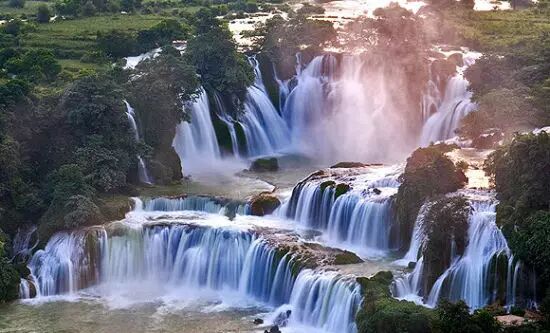 , q3 n' k# e, @. i7 n% N3 }德天瀑布位于中国广西崇左市大新县硕龙乡德天村,中国与越南边境处的归春河上游,瀑布气势磅礴、蔚为壮观,与紧邻的越南板约瀑布相连,是亚洲第一、世界第四大跨国瀑布。' V1 n* G6 y9 {+ V! ]9 c9 k* \