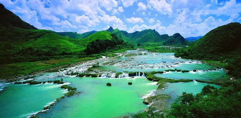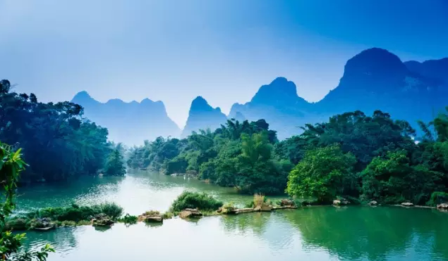 ' ?& V, m6 [" N/ g8 Q3 G+ l据说外地游客喜欢游阳朔,而广西当地人则前往明仕。明仕田园位于广西大新县,方圆20公里的景区山清水秀,山环水绕,素有小桂林之称。