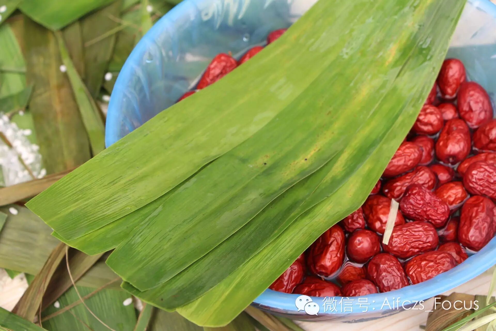 . f; M/ m& \# p. ~! Y0 G3 G粽叶准备好了看外观。“返青粽叶”具有均匀的青绿色,看上去很漂亮;而原色粽叶颜色发暗发黄。 - 0 V3 U) ]- }) X8 I4 [6 L