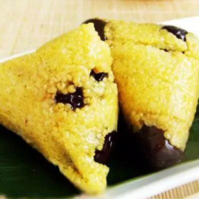 在诸多品种的粽子里,辈份最大,资深最老的,当首推山东黄米粽子。选用上等黄黏米包裹的粽子口感黏糯,再夹以红枣,其风味可以说是别具一格。食用时,可根据个人习惯,蘸以白糖,增加甜味。 # y* x( w' `( P% y8 g' f