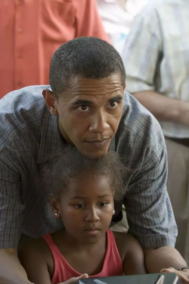 奥巴马不仅会遛狗还会带娃 8 Z- p0 F# l+ R; d