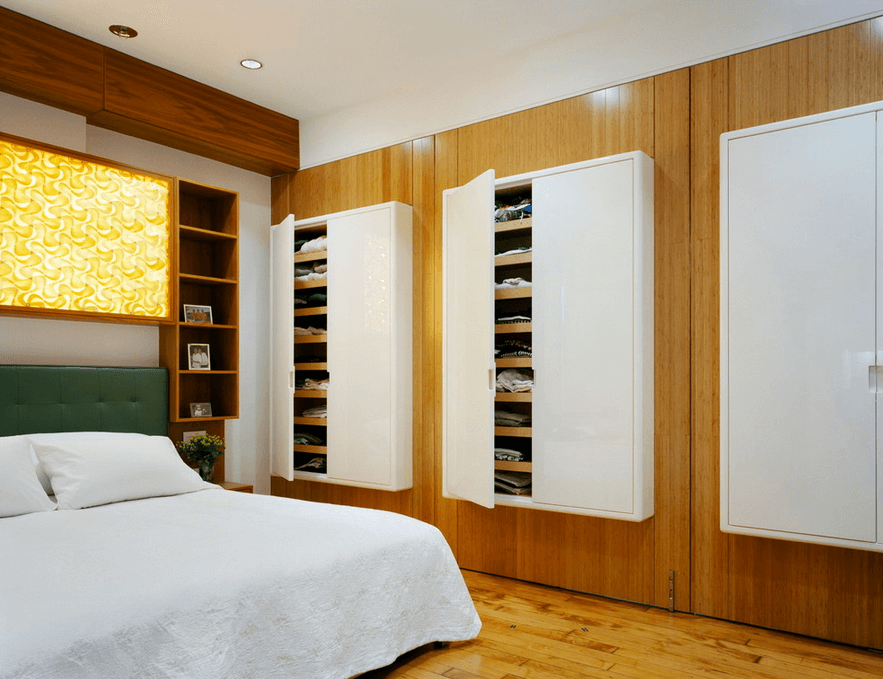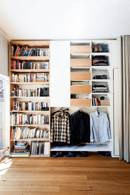 最爱的壁橱 不是每一间卧室都有空间放大衣柜的,那些衣帽间的梦,有时在梦里出现过。地板上堆满了装满衣服的箱子,毫无设计可言。重新构想下自己的卧室吧,墙壁上小小的衣柜,天花上挂衣服的绳子,其实都可以解决空间不足的问题。