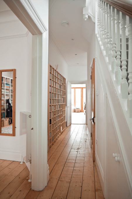 + r6 |- g1 C) f2 x( a7 g$ g% _! }楼梯下的边边角角 楼梯下的空间有两个巧妙的收纳技巧,❶楼梯本身,比如收纳功能的抽屉,但这个选择比较花钱。❷利用楼梯的角落空间或尴尬的空间来定制自己的存储。
