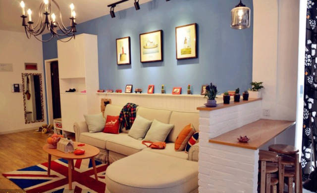 房子就应该一半住人一半养心,向往么? 简单实用的照片墙,留住属于你我的回忆。 纯色的沙发后有炫丽的照片墙,各种缤纷的暖色共同打造一个温暖的宜人客厅。 看完后,是不是超想拥有一个自己的小窝? $ S) Z0 g/ L! `6 u7 C