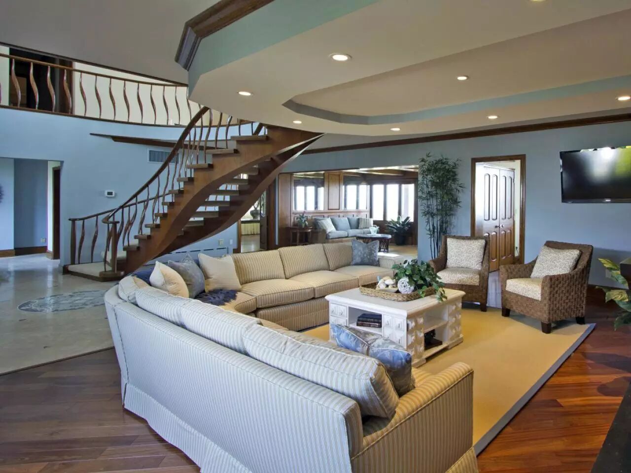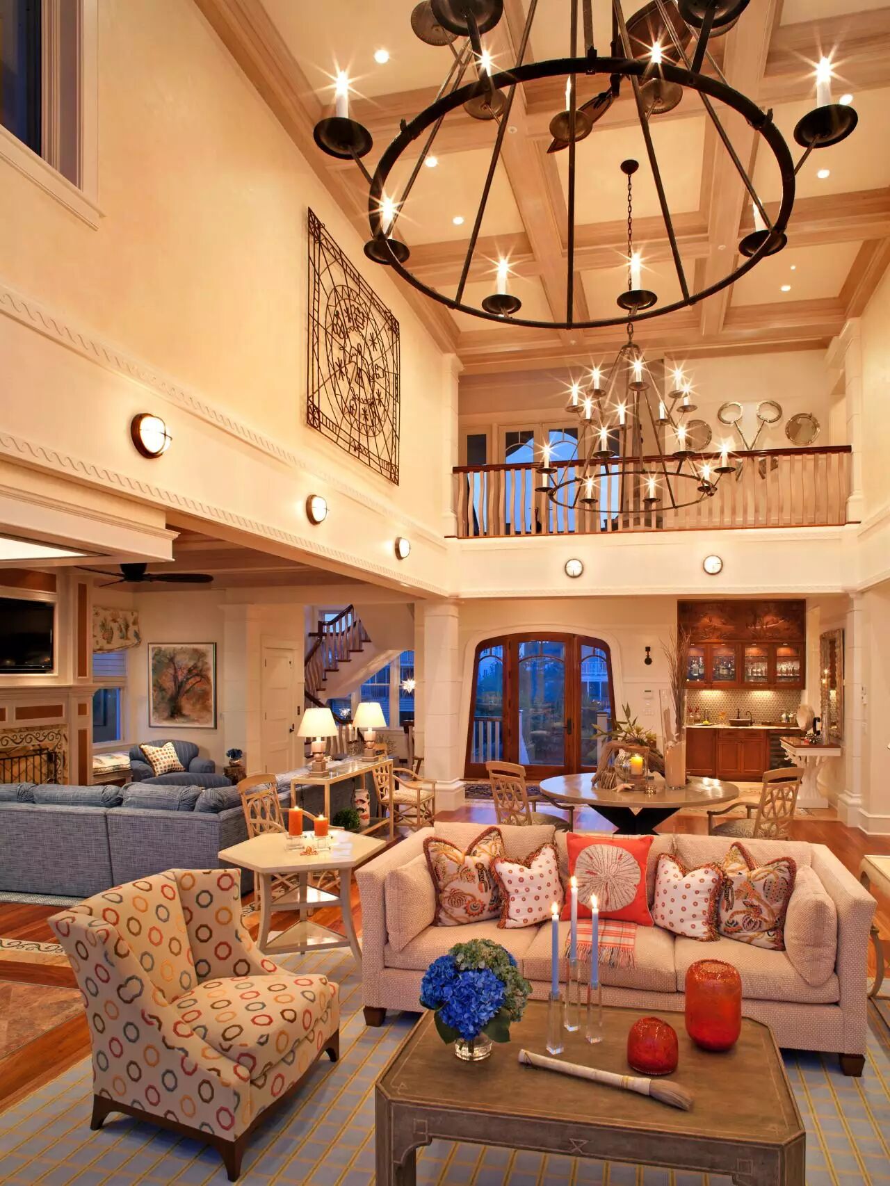 走进这个人两层自然风格的家,设计师布鲁斯·帕默继续他优雅的海岸生活的主题特色传统:海洋为灵感的图案和装饰,加上宏伟蜡烛吊灯和方格天花板,非常漂亮。