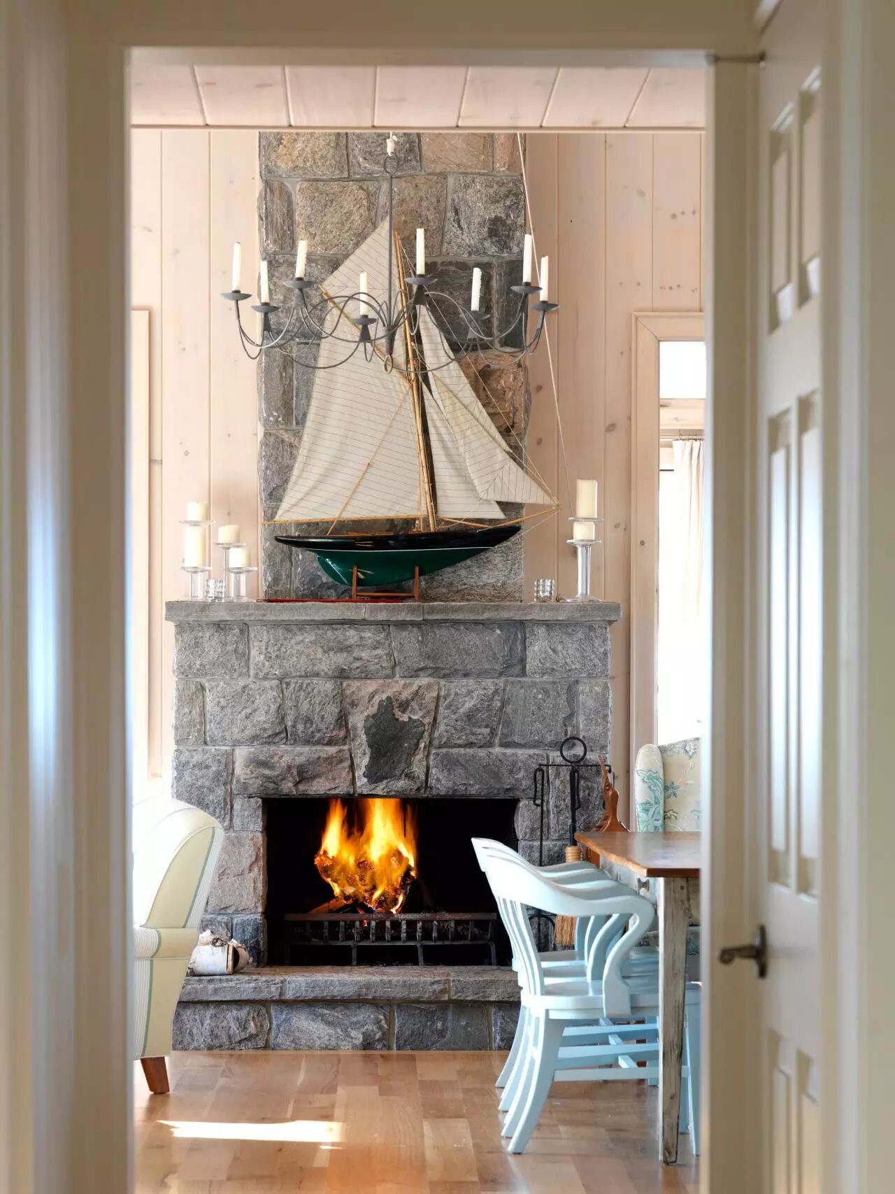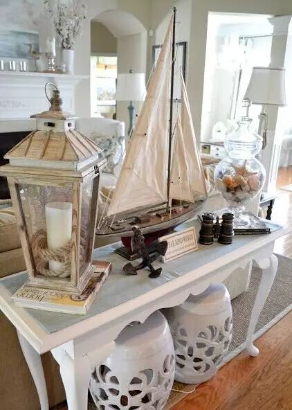 很喜欢这个古董模型船设计。设计师莎拉·理查德森用这一部分作为欢迎客人进入客厅前的焦点风景。