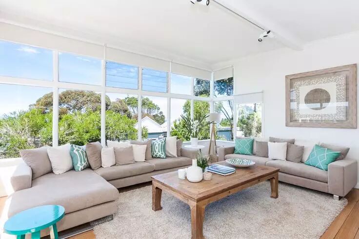 柔和的中性色充满整个空间。帆船、白色的家具,都散发出滨海生活的味道。绿松石是这个空间一个充满活力的颜色,立即吸引了你的眼球。