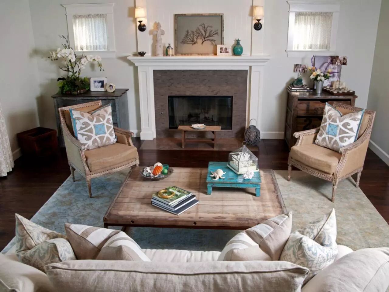 在这个传统的客厅里,设计师Darci Goodman使用大量的亚麻布和绿松石来装饰,感觉非常舒适,