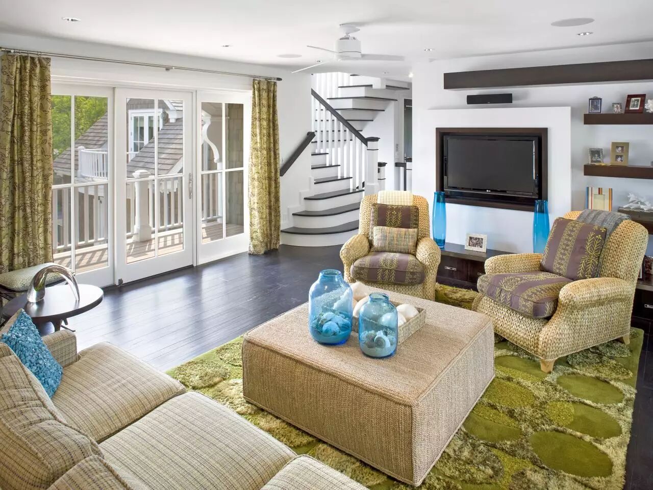 特拉华海滩的家拿出浑身解数,从滑动的法式门通往室外的海滨阳台到光滑的乌木内置插件。通过黄绿色、绿松石的风格以及小贝壳饰品和海草的扶手椅等元素呈现沿海风格。