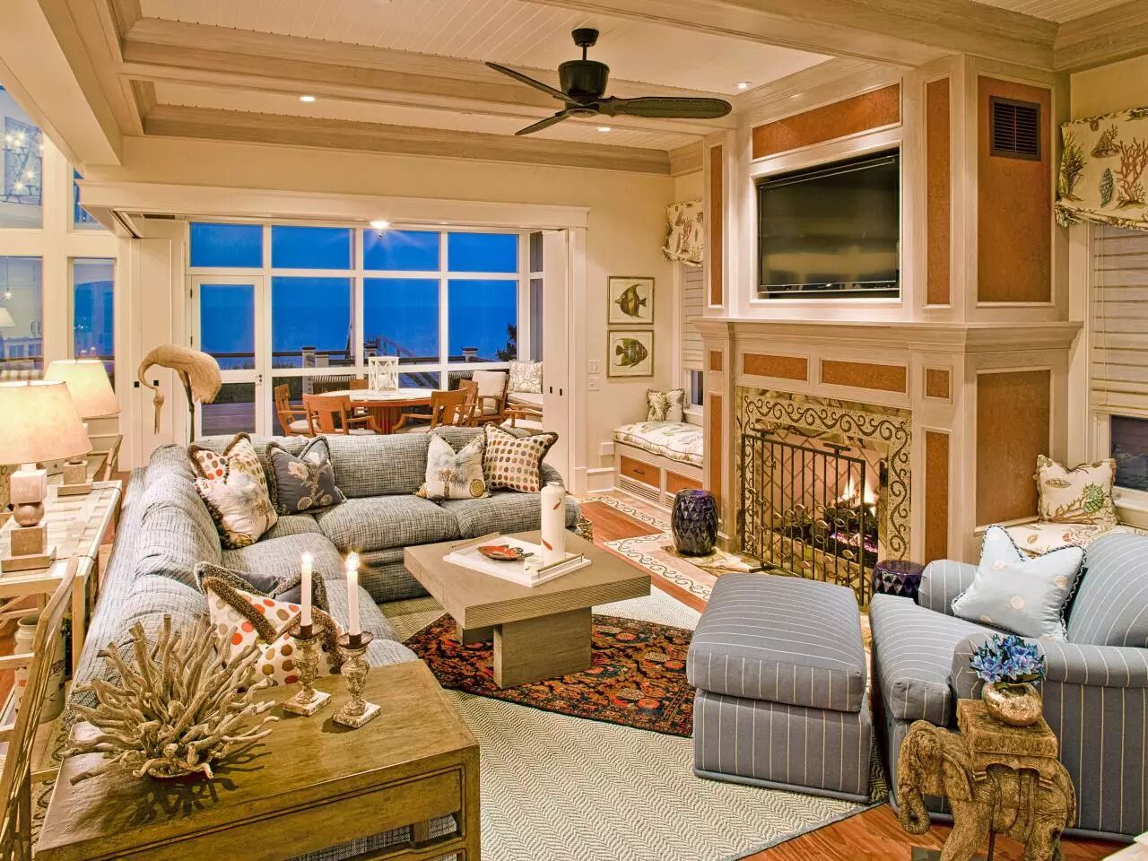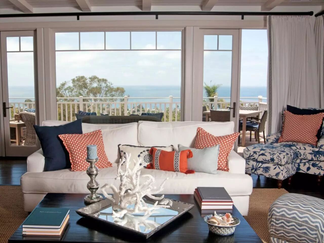 柔和的色调的珊瑚让人感觉很温暖。在这里,设计师布鲁斯帕尔默将优雅的海洋图案用到窗帘,抱枕,坐垫和艺术品上,沿海风格的空间,就这样完成了!