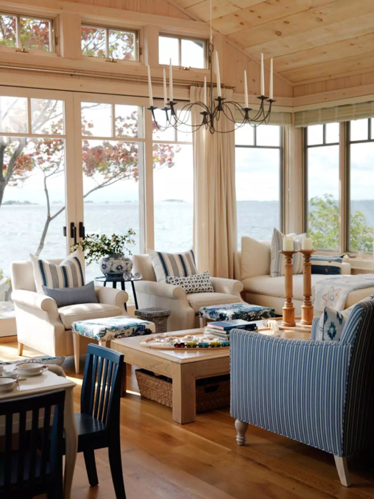 现在正值盛夏,装修的时候是不是特别想让你家充满夏天的味道?不管你是不是住在海边,其实通过一些巧妙的设计是可以给你的客厅带来沿海风格滴。