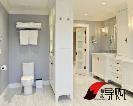 在卫浴间内,如果物品是敞开放置的,很容易遭到湿气寝室而变质,所以做好干湿分离不妨多用柜子来帮忙。墙面挂柜是个不错的选择,可以设置在镜子后面、坐厕后面等空间。 & f V! d+ b j1 I- B