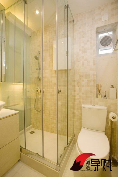 对于小户型来说,淋浴间相比浴缸更加合适,更方便全家人使用,也不会增加额外的负担。同时,地面可以采取加高设计,让干湿分区层次更加分明,减少了干区的潮湿度。