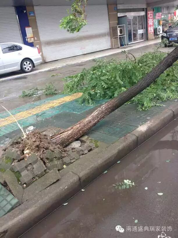 ! o4 S+ w! u$ T: @$ G9 y虽然没有受到台风正面袭击,风势雨势也相对仁慈,可7月12日早晨的上班路上,小编经过钟秀路,依然看到路边的槐树倒了很多,还是连根折断的那种。颇感诧异的同时,小编粗略分析一下:这树应该是半途移植的,根基不甚牢固,才会遭此灭顶之灾。