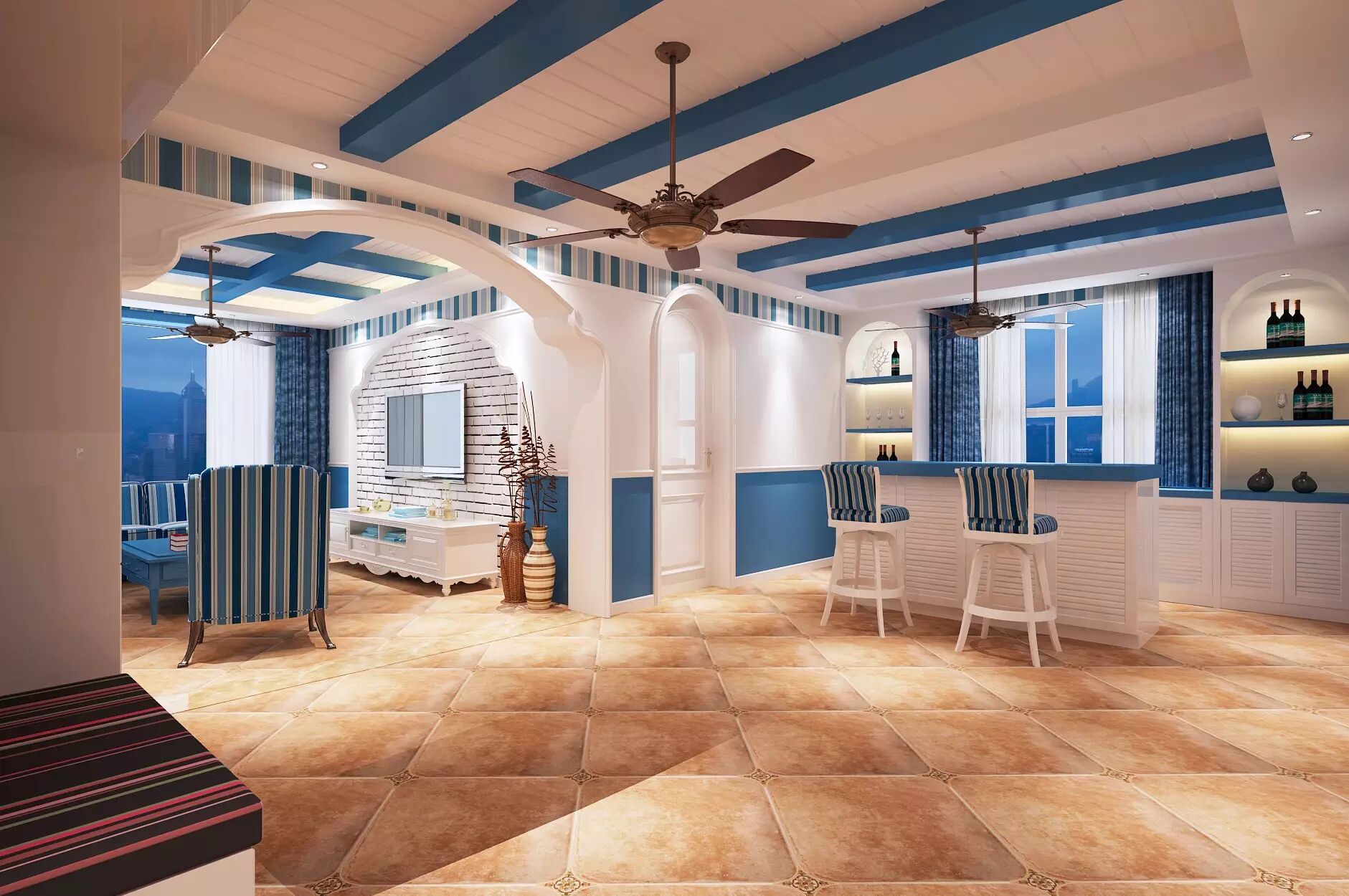 地中海风格以蓝色与白色、黄、蓝紫和绿、土黄及红褐为主体颜色,以白灰泥墙、连续拱廊与拱门,陶砖、海蓝色的屋瓦和门窗、小石子、贝类、玻璃片、玻璃珠等为元素。 a/ x2 L; ?8 o6 y$ K! R+ V" K