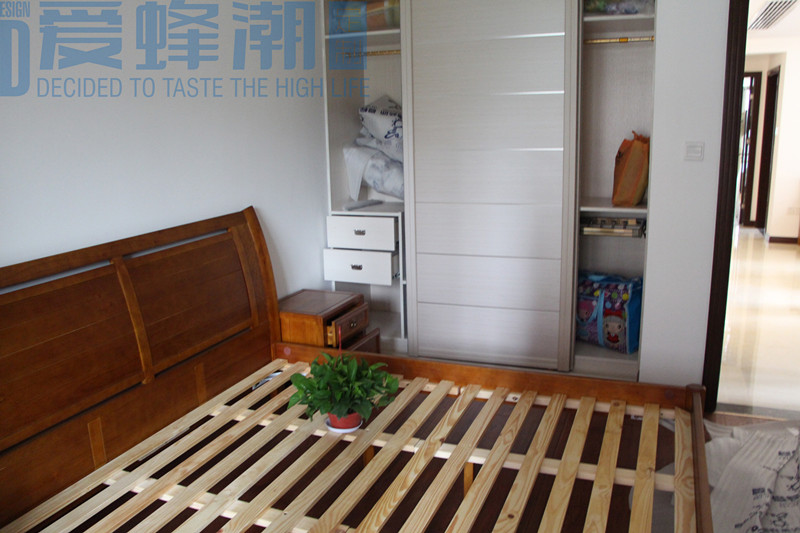 主卧在家具色彩选择方面秉承了传统古典风格的典雅和华贵,但与之不同的是加入了很多现代元素,内嵌墙体衣柜饰以精巧的灯具以及配饰呈现着时尚的特征。古木色的床,希望这样的卧室能够带给业主一个古色古香的梦!