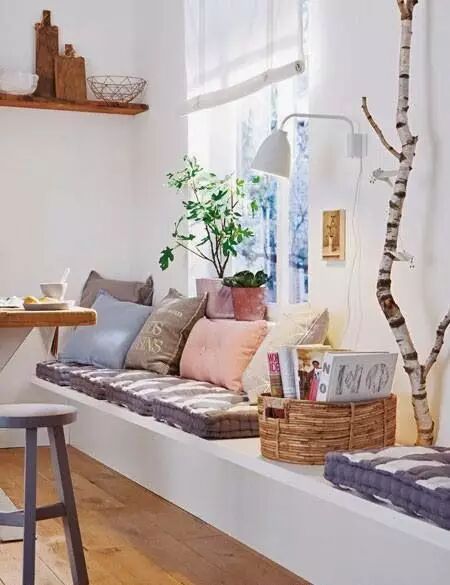 不过好像只有西方的飘窗喜欢作为很不错的观景台。躺在窗台上,上面放上两个靠垫,或坐或卧,白天看车水马龙,晚上看满天星斗。利用飘窗的另一方面是其充足的光照。