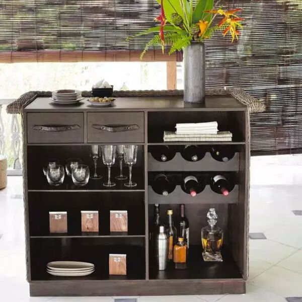 酒架,小酒吧家具,如木柜,边桌和咖啡桌迷你酒吧是节约空间、创造舒适、现代家居的绝妙道具。 0 c) @% I0 s) g1 ^$ ?