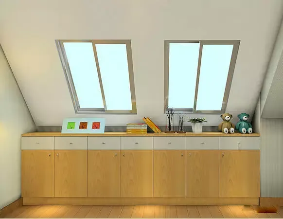 通过量尺定制,在天窗下面做一排简单的柜子,既可以增加收纳空间,还可以在上面摆放一些充满生活气息的小物件哦~