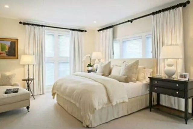 8 O8 R& y/ i ?+ ~) S新实用主义 这个卧室以咖啡色和亮白色为主调,搭配淡黄色的背景墙,整个房间给人留下简洁舒适的印象。