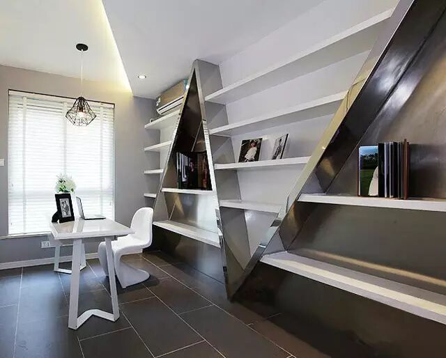 冷硬金属金属在触感和色泽上都给人冰冷的感觉,可以降低夏季的浮躁感,带来别样的清爽感受。采用清爽简洁的家装风格( J. ?5 [4 l- U+ b5 _# V' X