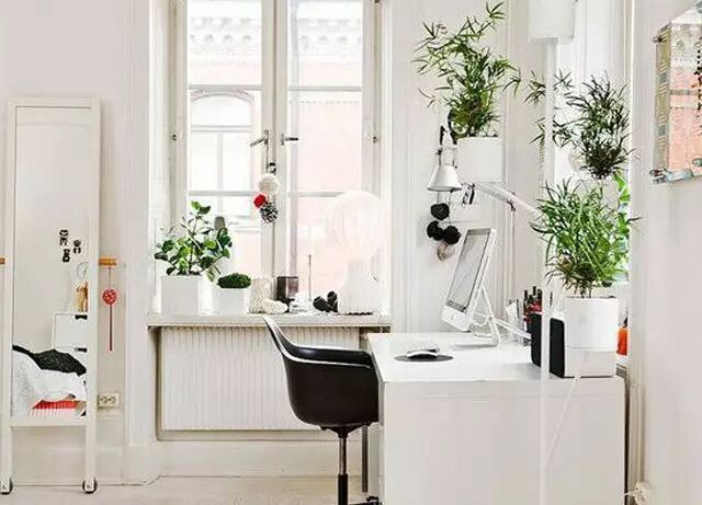 通透白色大片的白色配以少量绿植的装饰,既有通透感又有清新绿意。